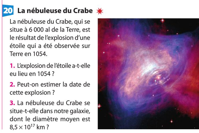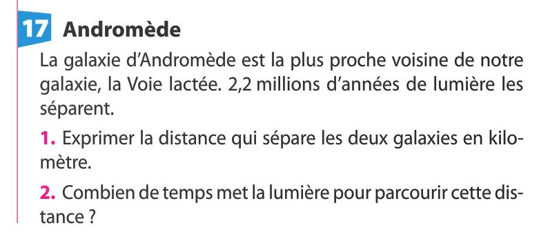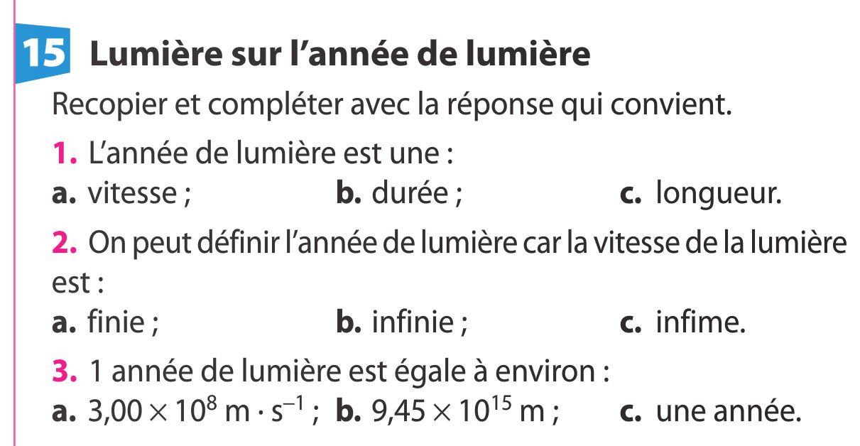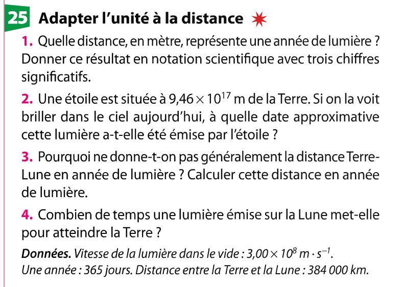 Exercices du livre au sujet de l'année de lumière :
